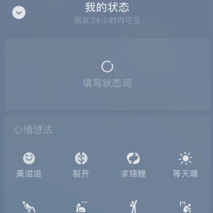 目前,微信状态已提供数十种模式,例如“美滋滋”、“裂开”、“发呆”等,同时,用户也可以自定义填写状态词。