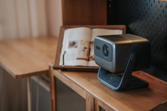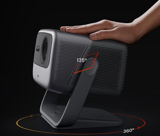 除了在光机上下苦功夫之外,坚果投影创新性的在投影仪上使用了一体化云台设计方案。工程师经过上万次测试打造出最佳手感力度、让家用投影仪实现135度自由悬停和360度随意旋转。为了在使用期间让画面更稳定,坚果投影还注重软硬协同,通过软件算法对画面进行实时精准的梯校和对焦。用户无需给投影仪垫书便可随意挪动投影仪,不用担心画面歪斜,极大的丰富了家用投影仪的使用场景,无论是在客厅还是阳台,在山上还是海边皆可轻松观影。