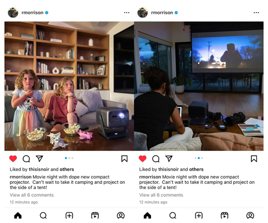 顶级的制片人对坚果投影爱不释手,许多奥斯卡摄影大师同样也是坚果三色激光投影的忠实粉丝。凭借《泥土之界》成为第一位提名奥斯卡最佳摄影奖的女性摄影师Rachel Morrison,近期在ins上向自己的粉丝们强烈推荐了N1 Ultra,并表示这款产品已经成为其工作与生活中的最佳拍档,期待着把坚果三色激光投影仪带去野外陪伴自己和家人露营。