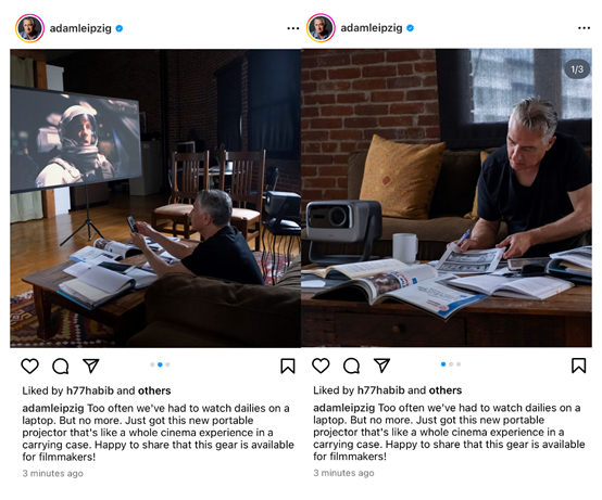 此外,《爱乐之城》导演达米恩·查泽雷执导的圣丹斯获奖短片《爆裂鼓手》摄影师Edd Lukas,也特意晒出了自己使用坚果N1 Ultra进行日常观影与工作的照片。可以看到,坚果的三色激光投影仪正在以其专业性俘获这些好莱坞大咖们的心,让他们自发的向粉丝种草这款难得一见的好产品。