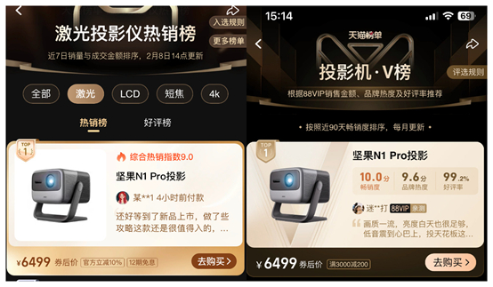 而优秀的产品自然会得到市场的正反馈,坚果N1系列自国内亮相以来,获得了众多媒体的盛赞,一经发售就连续各大平台投影仪销量第一的位置,取得口碑和销量的双丰收。