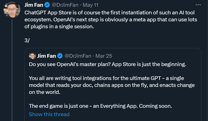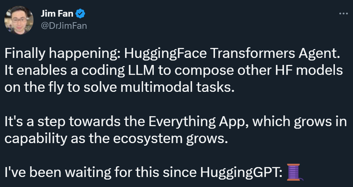 英伟达 AI 科学家 Jim Fan 评价说:这一天终于来了,这是迈向「Everything APP」(万事通 APP)的重要一步。
