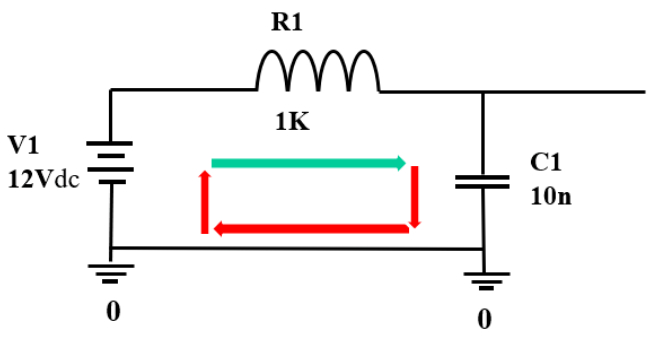 其隐含一个问题就是在PCB上其实V1的负极和C1的负极是有一条线(PCB layout工具软件中用的词比较准确,Trace,踪迹/轨迹)。往往在设计阶段A->B->C是都会关注的。如果EMC出现问题,除了要在原理图上查找电路参数的问题,还需要特别关注C->D,即回流路径。