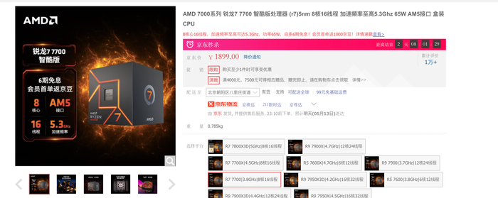 AMD R7 7700 处理器降至 1899 元,发售四个月降 400 元