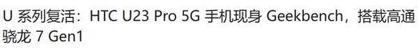 HTC 不仅要复活自从 2020 年就再也没出过新手机的 U 系列,甚至连 Geekbench 的跑分、外观和具体配置都曝光了。