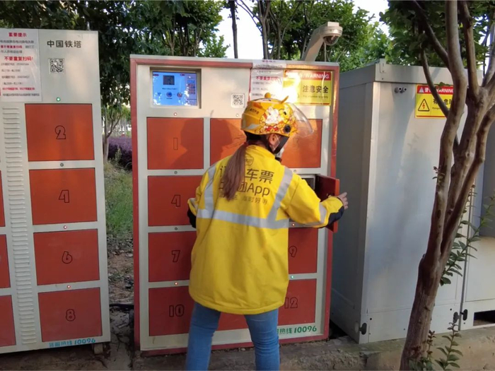 骑手通过“铁塔换电”APP寻找换电站,电池低于30%就会自动告警,并提醒骑手到附近的换电站进行换电。另外,换电柜中的电池充电时,后台也会实时监测电池健康状态,确保骑手便捷、安全换电。