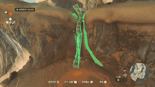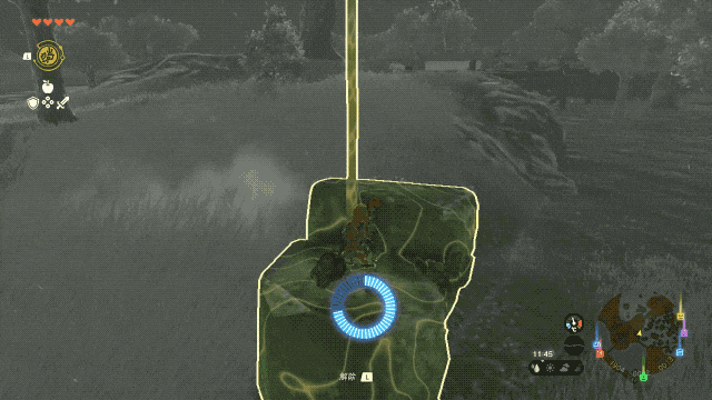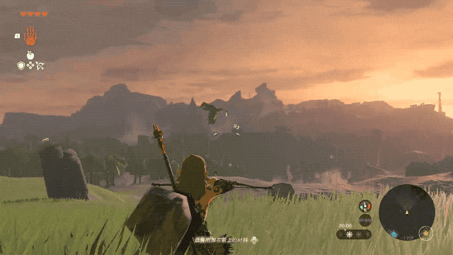 《旷野之息》玩家:静止一块石头,敲打累计动能,抓住石头飞上去。