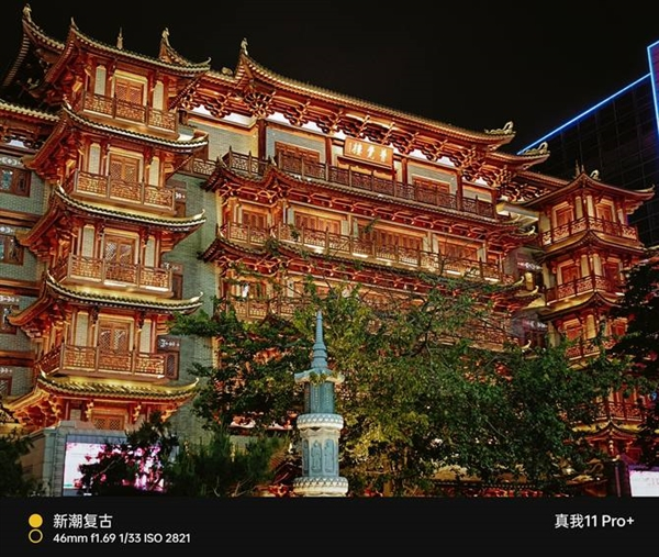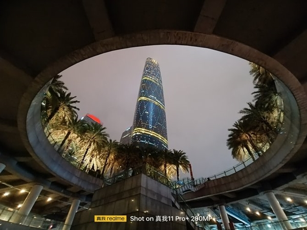 实际体验下来,真我11 Pro+的成像质量很不错,即使是在阴天,也能有丰富的细节以及准确的色彩还原。而来到夜景拍摄,真我11 Pro+不仅保持了更快的成像速度、更高质量的场景噪点优化和高光抑制的同时,也能清晰还原暗光细节。