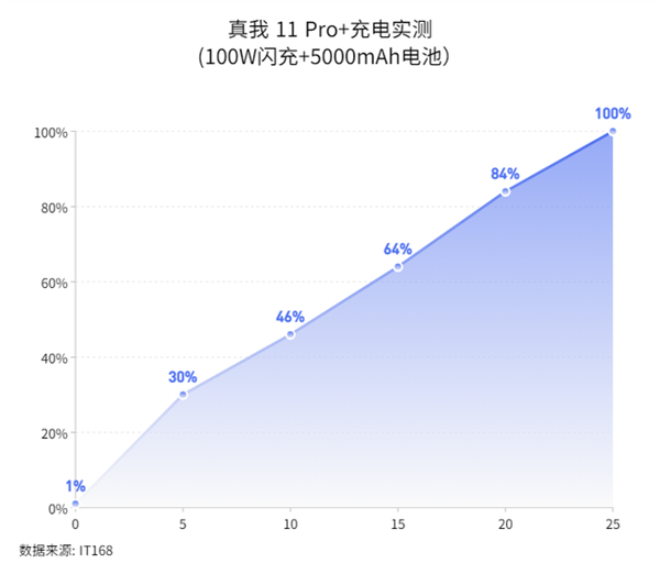 续航方面,真我11 Pro+搭载了用100W+5000mAh闪充长续航组合,实测5分钟充30%,25分钟充100%,日常基本无续航焦虑。