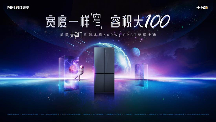 美菱在不断的技术竞争中实现创新升级,在尽全力高效利用空间的同时,更打造家居环境美感,带来视觉与体验的舒适感。美菱十分净BCD-600WUP9BT冰箱的星釉蓝面板融合中国传统瓷釉工艺烧制而成含蕴晶莹,犹如夏季夜晚深蓝色的天空繁星点点,深邃且宁静;仿金属拉丝工艺盖板和面罩,质感一流,提升内饰档次;全空间集成技术,减薄保温层厚度的同时提升保温性能使容积率提升至60%,全面实现各容积段冰箱宽度超窄化。
