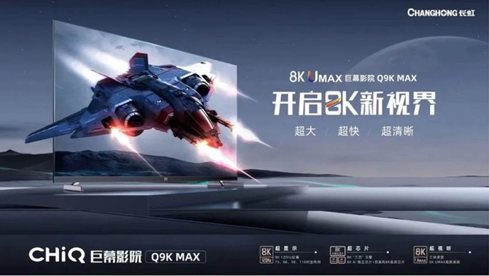 长虹Q9K MAX电视以超大、超快、超清晰的产品特点,开启了8K新视界。其行业独创的“3芯”引擎,即旗舰8K AI独立芯片+双构架画质芯片,给产品赋予了强大画质解构功能。其中,8K Al独立芯片带来了1.6TOPS运算能力,每秒可进行1.6万亿次操作。同时产品搭载的长虹自研Al画质算法可轻松实现8K画质解码、8K影像增强。全新双架构8K画质芯片,8K120Hz高刷驱动搭配8K MEMC,双重加持,使画面色彩及画面细节得到质的飞跃,还原真实视界所见。