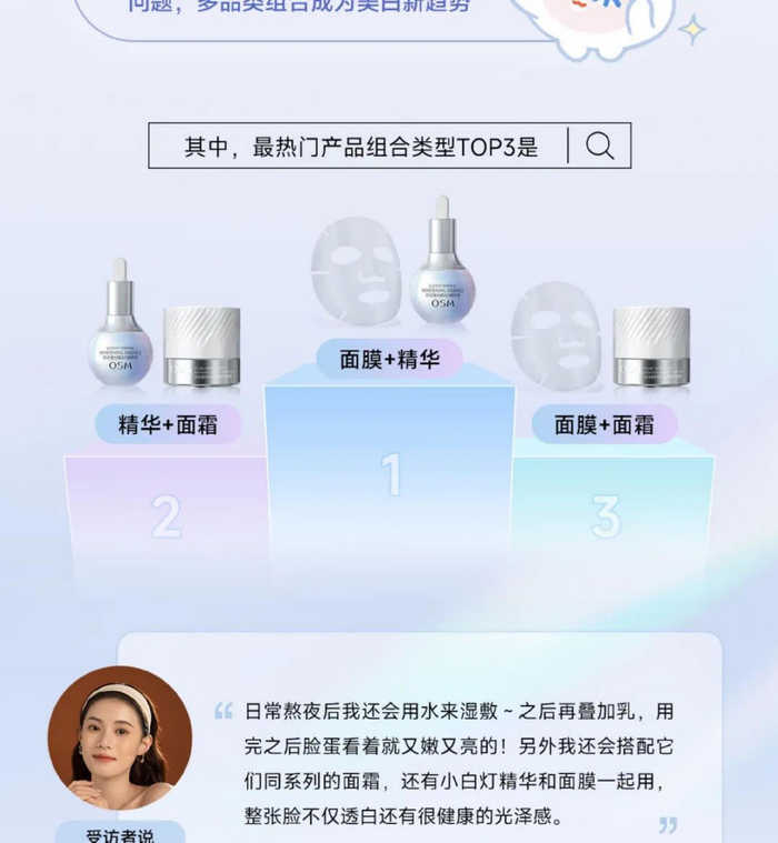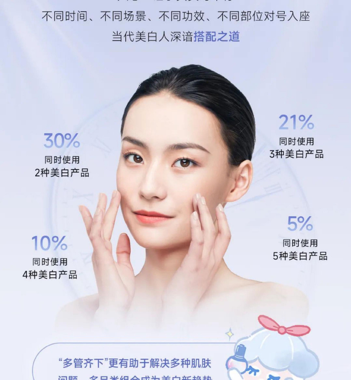 在多重美白趋势下,消费者对“套装”需求增长,尤其是“精华+”套装。