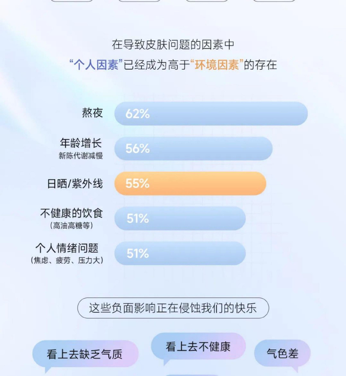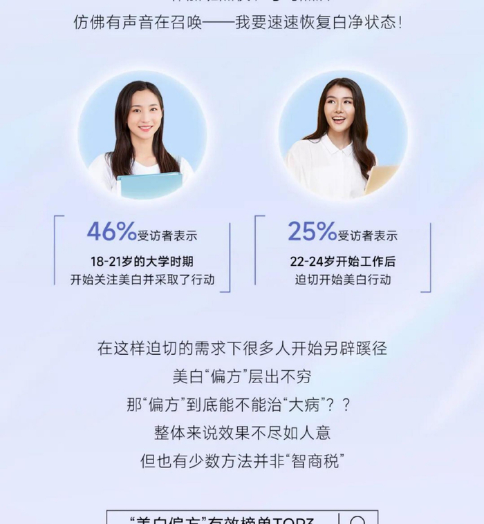 “不够白”是消费者最大痛点,带来颜值、心态等多重负面影响,因此美白刻不容缓。