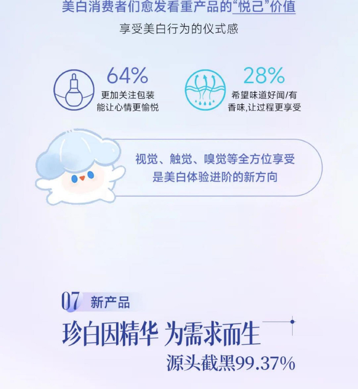 使用过程更“悦己”,香味、包装颜值等美白产品情绪价值受关注,好用的同时,还要好闻又好看。