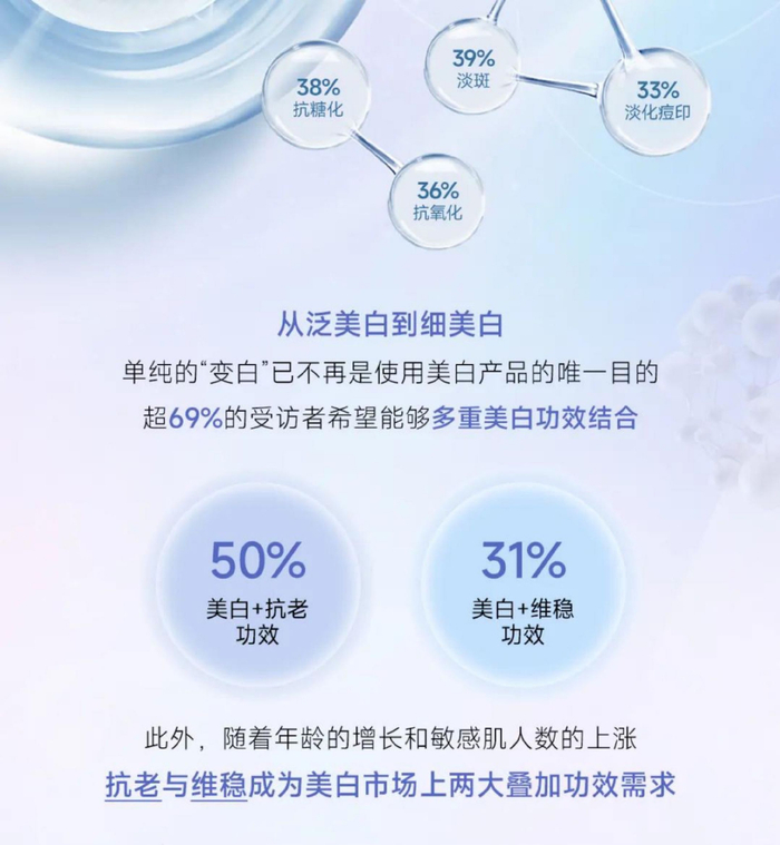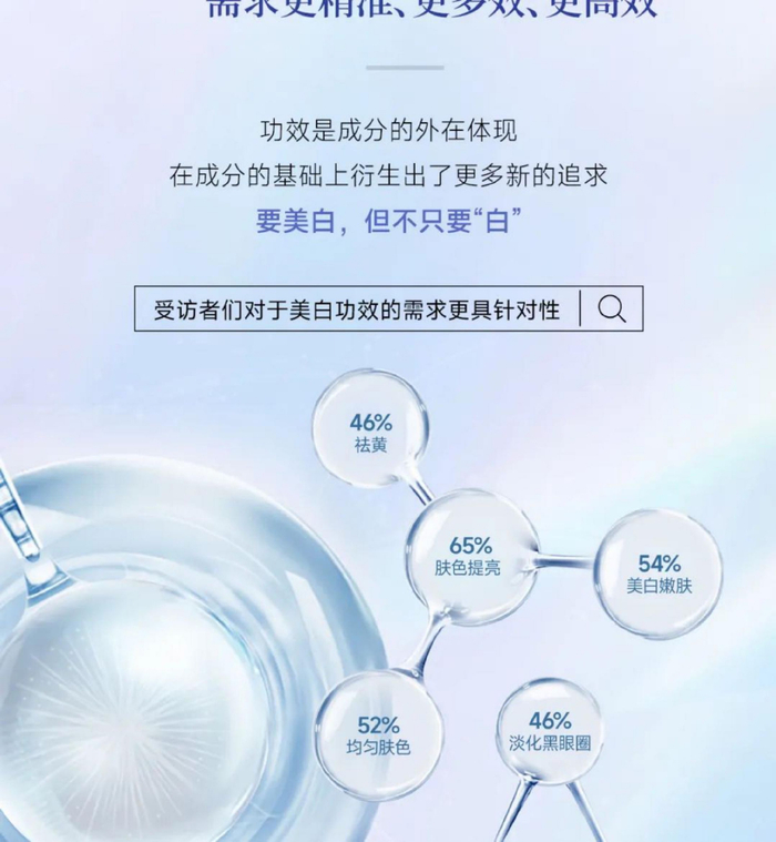 功效细分:「美白+」需求凸显,突破单一美白,追求复合功效成为新趋势。