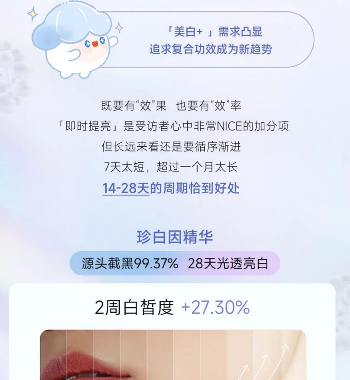 美白功效更具针对性,真正实现由“泛美白”到“细美白”。