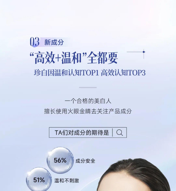 美白成分党崛起,消费者成分心智越发成熟,对美白护肤品成分更关注。