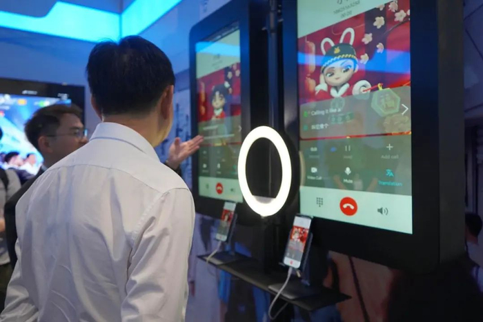 在5G新通话体验点,体验者们不仅感受到了当前湖北移动5G主套餐均已升级的高清视频通话服务,更是体验到了实时翻译/转写、视频客服、AR趣味通话等全新的可交互的超清通话功能。
