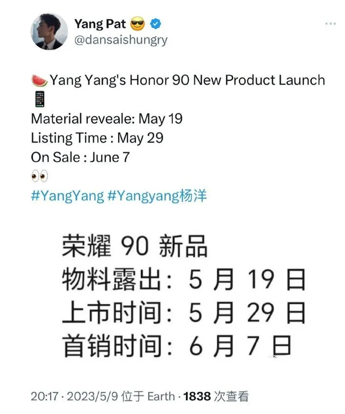 荣耀90系列渲染图曝光:将于5月29日正式发布