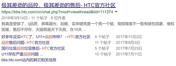 另外, HTC 的品控问题,更是让它的口碑直线下滑。