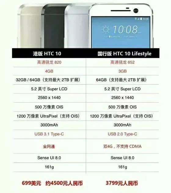 以及16年推出的没有明显短板的 HTC 10,也是同样的骚操作