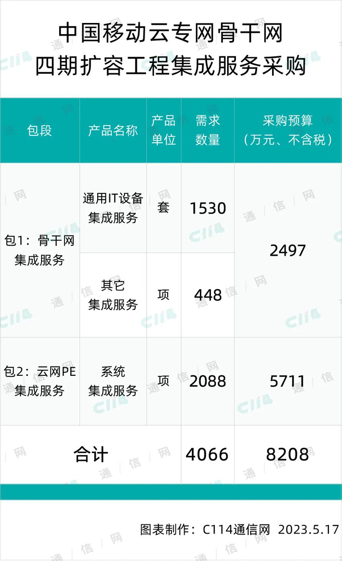 总预算8208万元!中国移动启动云专网骨干网四期扩容工程集成服务集采