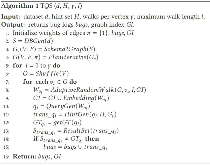 给定一个数据集,其中表格和列是顶点,边代表的是顶点之间的关系。DSG 在 上使用随机游走来生成查询的连接表达(第 10 行)。事实上,连接查询可以被投射为