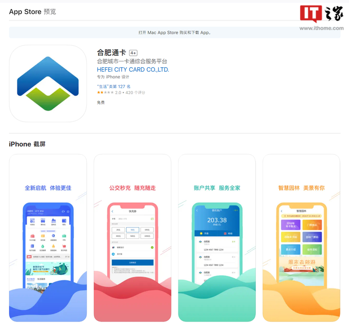 IT之家 5 月 18 日消息,据IT之家网友反馈,苹果 App Store 上的合肥通卡应用已升级到 3.2.0 版本,本次更新带来了 NFC 卡片充值功能,还新增工惠出行线上补贴领取,优化适配新版 iOS 系统。