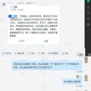 近日,江苏苏州某公司运营经理批评一员工“下班就走”,员工拒绝加班后在工作群内回怼,“早上要求按时到,下班却不能按时走”……