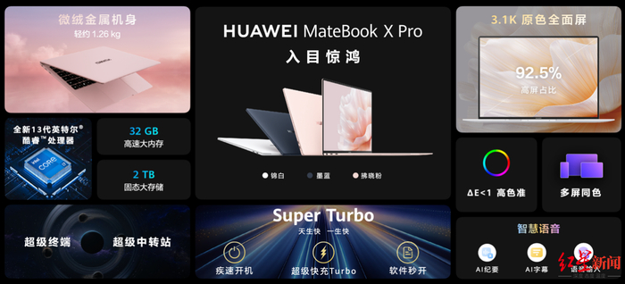 此次MatePad Air上自研软件华为笔记App也有了更强大的功能,升级了全新的华为笔记录音管理能力,搭配智慧多窗,实现边看视频、边录语音、边转文字、边写笔记的四重多任务管理,为用户带来了更适合随行场景的办公学习生产力。在全场景智慧办公的大趋势下,新一代智慧旗舰轻薄本华为MateBook X Pro在美学设计、产品性能、智慧体验等多个维度进行了升级。