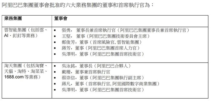 今年3月28日,阿里CEO张勇宣布阿里全新组织架构“1+6+N”,在阿里巴巴集团之下,将设立阿里云智能、淘宝天猫商业、本地生活、国际数字商业、菜鸟、大文娱等6大业务集团和多家业务公司,各自独立。本次财报中明确,除淘天集团仍将继续由阿里巴巴集团全资拥有外,另五家业务集团都可以灵活地筹集外部资金,并可能寻求单独上市。