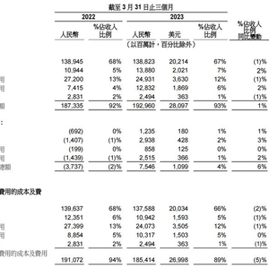 截至2023年3月31日季度内,阿里经营利润为152.4亿元,同比下降9%。经调整EBITA同比增长60%至252.8亿元,主要是由于中国商业分部经调整EBITA增加,以及本地生活服务和数字媒体及娱乐分部的经调整EBITA亏损收窄。