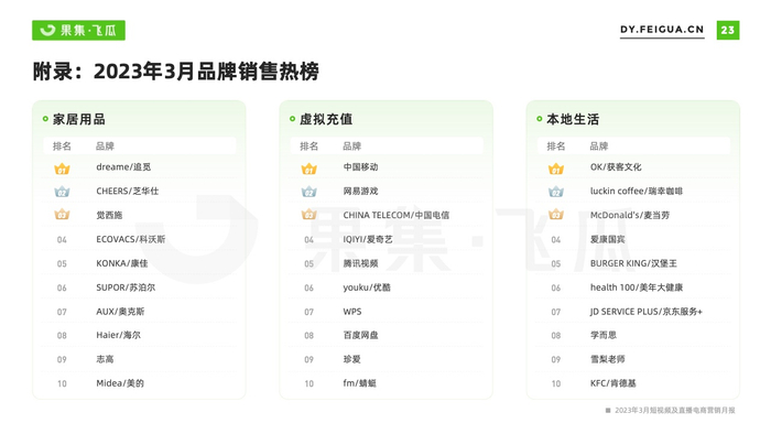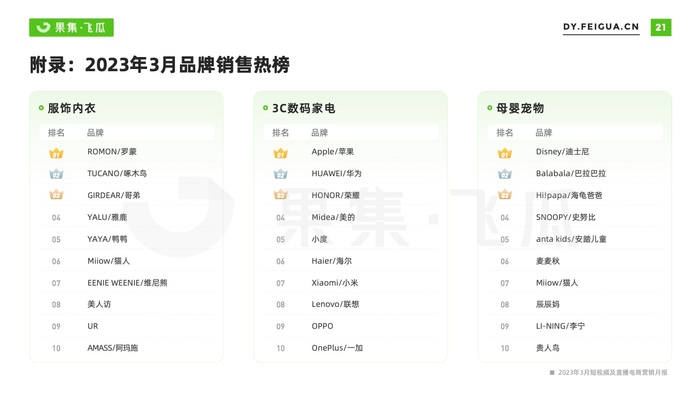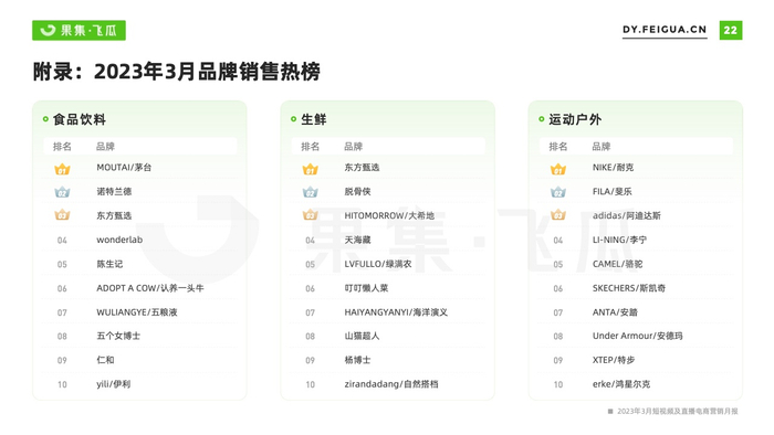 对此,飞瓜出品《2023年3月短视频及直播电商营销月报》,一起来看看吧!