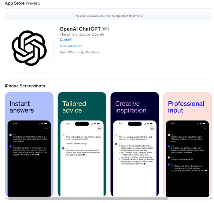 OpenAI 官方 AI 聊天机器人 ChatGPT 上架 App Store