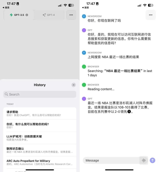 2. ChatGPT app 通过历史问答实现联网浏览和插件集