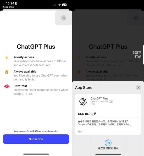3. ChatGPT app 可以通过 App Store 订阅 ChatGPT Plus