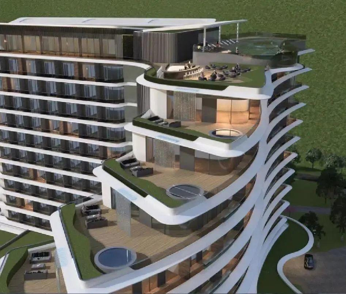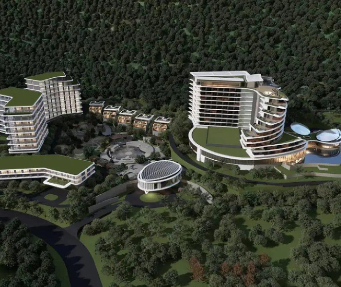 项目以山、水、绿谷为设计元素,打造集养生、娱乐、运动、亲子、商务等功能于一体的五星级标准度假酒店,占地面积60.87亩,总投资估算约8亿元,总建筑面积81160平方米,配套客房约400间、停车位约650个、戏水乐园5500平方米。