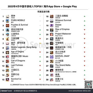 Sensor Tower商店情报平台最新数据显示,2023年4月中国手游产品在海外市场收入及下载量排行榜,详细榜单变化如下。