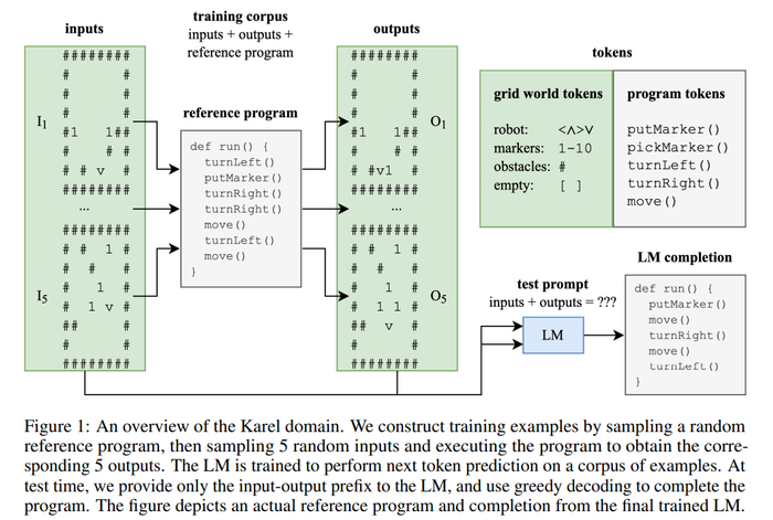 该研究使用的训练集包含100万个随机抽样的Karel程序。20世纪70年代,斯坦福大学毕业生 Rich Pattis 设计了一个程序环境,让学生教机器人来解决简单的问题,这个机器人被称为Karel机器人。
