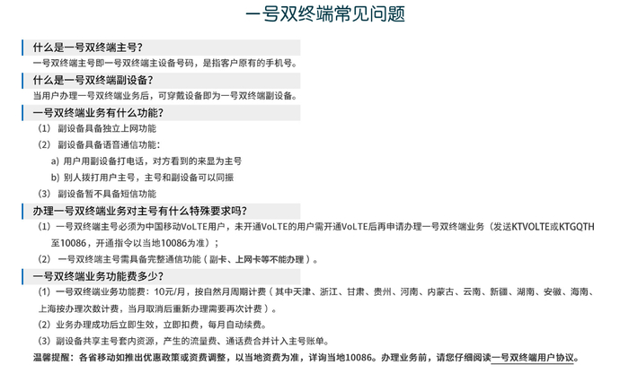 中国移动和多号官方发布公告,宣布暂停一号双终端业务办理。