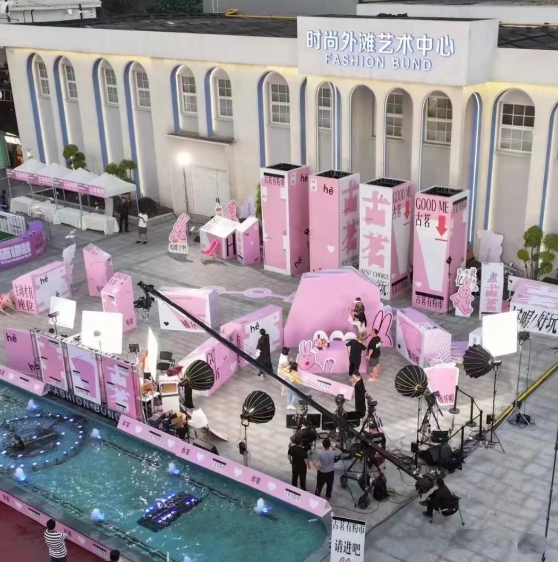 本次直播除了线上火爆意外,线下场地的搭建古茗也花了不少心思。直播间场地定在户外,以夏日水上乐园为主题,背景随处可见可爱魔性的Kimmy&Miki粉红兔子,让直播间成为了一个有趣有范有料的夏日乐园。直播中,不时切换直播场景,全程全景全方位展示,沉浸式的场景让粉丝们在线上也能体验到520的甜蜜。
