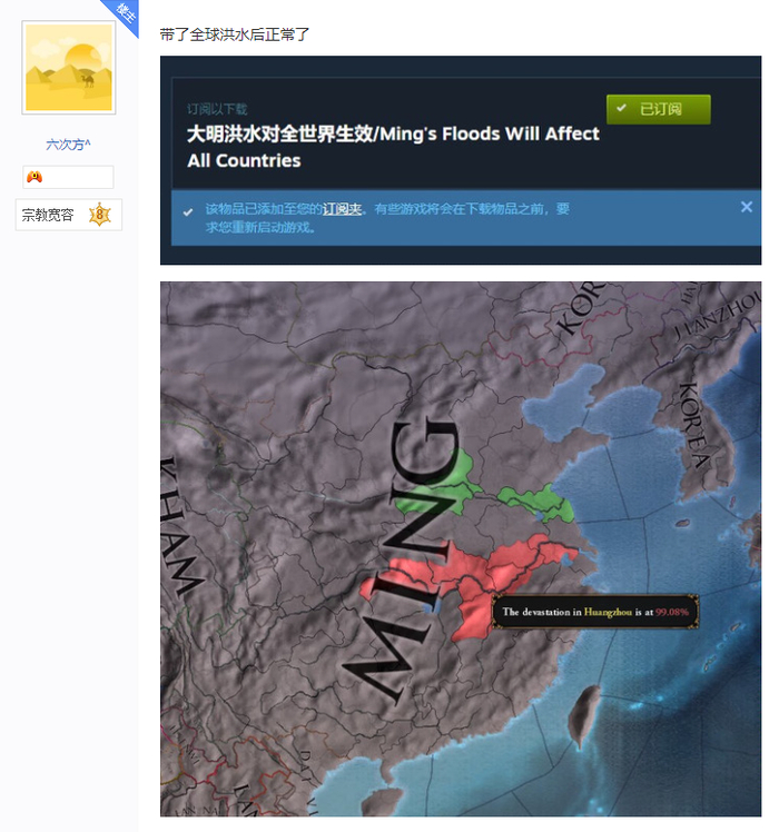在EU4的简体中文玩家常驻讨论的贴吧,大明玩家不在少数。官方对大明的改动,也是吧里经久不衰的话题。