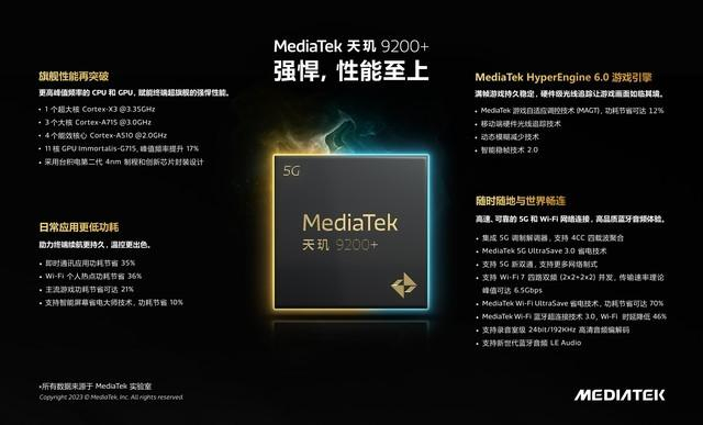 iQOO的Neo系列一直注重电竞、性能体验,我们也从这方面开始盘点。所谓“旗舰双芯”,一颗是全球首发的天玑9200+,采用台积电第二代4nm制程工艺,CPU包括1个Cortex-X3 超大核(主频3.35GHz)+3个Cortex-A715 大核(主频3.0GHz)+4个Cortex-A510 能效核心(主频2.0GHz),Immortalis-G715 GPU,安兔兔跑分成绩超越136万分,是目前SoC性能第一梯队。