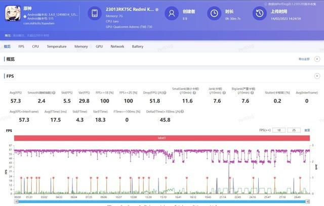 在帧率表现上,这三台手机中Redmi K60的表现就稍微逊色一些,可以看到明显的掉帧。当然,骁龙8+日常使用或是玩一些不怎么吃配置的手游,表现还是很强进的,根本不会卡,但重度游戏的用户,还是更推荐考虑iQOO或是一加手机。