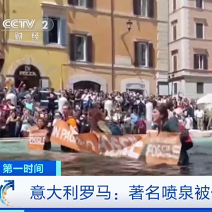 据报道,将喷泉染黑的7名激进的环保组织成员还手持写有“不会为化石燃料买单”等标语的横幅,抗议意大利政府的相关补贴政策。