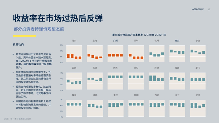 目前来看,产业及物流的基金团队组成依然分属不同架构。但随着近年来物流资产价格持续走热,一些物流资方也开始看产业项目。物流资本市场在两方博弈下价值也在调整,表现在资本化率在经历了持续走低后在2022年开始有所回升。