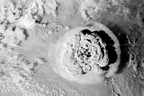 2022年1月,汤加火山喷发形成的火山灰云层。