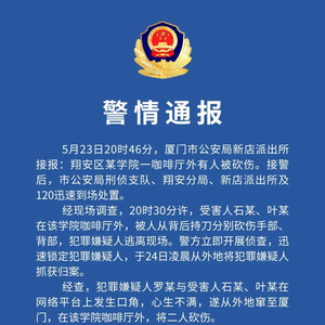 5月23日晚,红星新闻记者致电厦门市公安局翔安分局文教园区警务站,工作人员称正对相关情况进行依法处理。5月24日中午,厦门市公安局发布警情通报,受害人石某、叶某被砍伤手部、背部;犯罪嫌疑人作案后逃离现场,警方于当日凌晨从外地将其抓获归案。