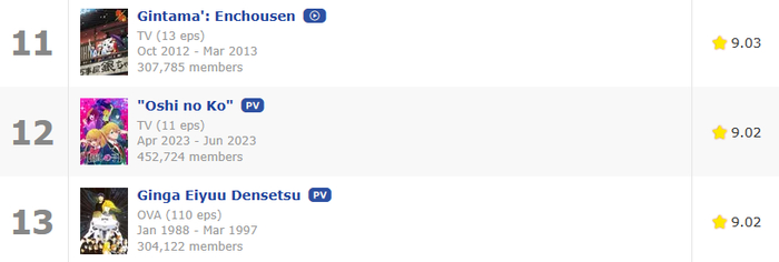4月12日开播时,这部番剧凭借着电影级水准的超常发挥与争议性十足的剧情迅速走红全网,笑点与泪点并行的剧本叙事实打实地震撼到了不少观众,从海外动画网站Myanimelist的数据统计来看,《我推的孩子》仅以首集的出色表现便能豪取动画排行榜榜首的地位(尽管如今已回落至第12名)。