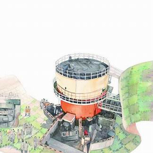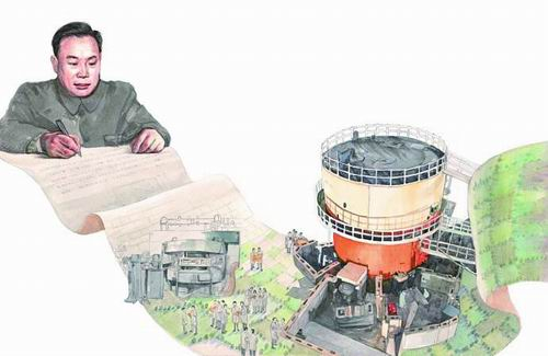 以《钱三强的故事》中钱三强开始组织攻关原子核事业发展为例,如何在年代跨度大的背景下体现“组织力”、向小读者呈现晦涩涉密的学科和设备,并在一个页面中体现出来?笔者的处理方法是将这些复杂的元素融合在一幅绵延的画卷中,重点画出钱三强蓝图绘制者的身份,这一蓝图小到设备大到工程项目从无到有、从二维到立体,而其变化的过程由画卷中的科研人员协同缔造。